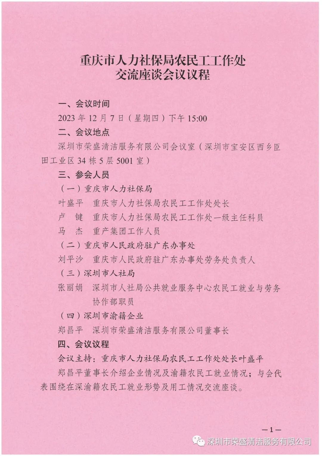 ÏÂÖç15ʱÕû£¬ÖØÇìÊÐÈËÁ¦Éç±£¾ÖÅ©Ãñ¹¤ÊÂÇéËæ´¦³¤Ò¶Ê¢Ò»ÂÉÏòµ¼Ò»ÐУ¬ÒÑݰÁÙÉîÛÚÊÐÔÆ¶¥¼¯ÍÅÇå½à·þÎñÓÐÏÞ¹«Ë¾Óë¸Ã¹«Ë¾ÖØÇì¼®Ô±¹¤¾ÙÐÐ×ù̸£¬³öϯ×ù̸µÄÏòµ¼ÉÐÓУºÖØÇìÊÐÈËÁ¦Éç±£¾ÖÅ©Ãñ¹¤ÊÂÇé´¦Ò»¼¶Ö÷ÈοÆÔ±Â¬¼ü£¬Öزú¼¯ÍÅÊÂÇéÖ°Ô±Âí½Ü£¬ÖØÇìÊÐÈËÃñÕþ¸®×¤¹ã¶«·þÎñ´¦ÀÍÎñ´¦ÈÏÕæÈËÁõƽɳ£¬ÉîÛÚÊÐÈËÉç¾Ö¹«¹²¾ÍÒµ·þÎñÖÐÐÄÅ©Ãñ¹¤¾ÍÒµÓëÀÍÎñÐ×÷²¿Ö°Ô±ÕÅÀö¾ê£¬ÉîÛÚÊÐÓå¼®ÆóÒµÉîÛÚÊÐÔÆ¶¥¼¯ÍÅÇå½à·þÎñÓÐÏÞ¹«Ë¾¶Ê³¤Ö£²ýƽ¡£